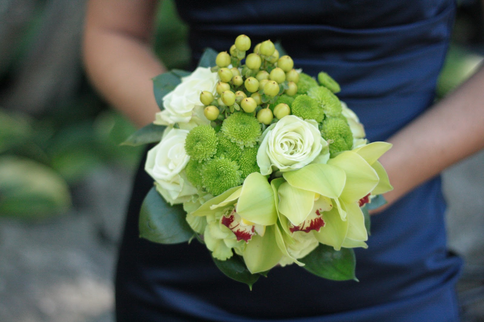 The chartreuse green of the bridesmaids’ bouquets was a lovely contrast to their classic navy dresses.