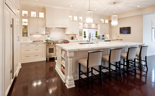 I’m thinking this fixture might point things in a direction that is a bit formal for me. I love the sophistication but am wavering on scale and price point {my kitchen is not as large nor as glamorous as the one above}, so I’m going to follow up with another option next week. I must admit that I’m already dreaming up other applications for this Cole Pendant if I don’t choose it for the kitchen. It is a whole lot of pretty in one little pendant… Decisions, decisions.