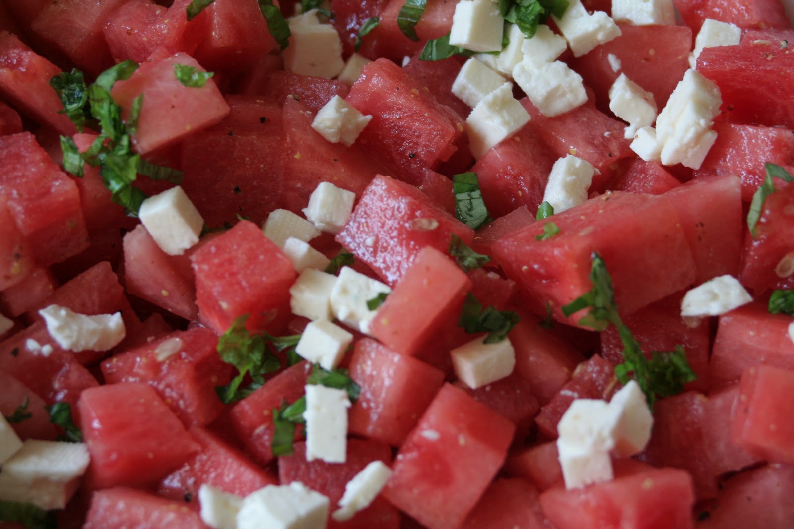 I absolutely love the sweet, fresh flavours of summer. Our family are watermelon addicts and we pretty much always have one on the go in the summer months when they are in season. So in celebration of the second official (smokin’ hot) day of summer, I thought I’d share a recipe with you. This is one of my favourite simple summer salads.