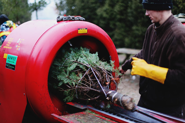 The last step in the process was the coolest. This giant, whirly Christmas-tree-bundler-upper packaged up the trees in the blink of an eye. So much easier to get them home like that, and so fun to watch!