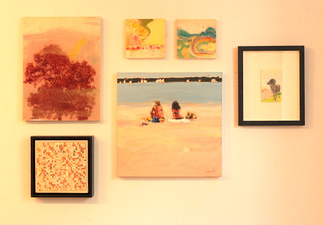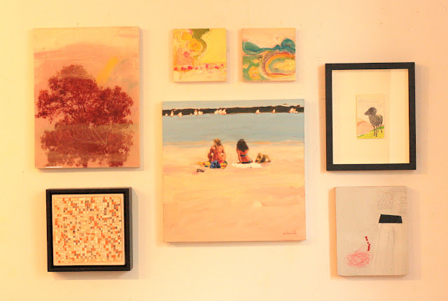 For our first grouping, Shira and I chose this beautiful figurative 16″ x 16″ piece by Elizabeth Lennie entitled “Beach Life” as our starting point. I love this Canadian artist’s work as she captures scenes that were foundational to some of my favourite childhood memories of growing up in Canada and enjoying the outdoors.