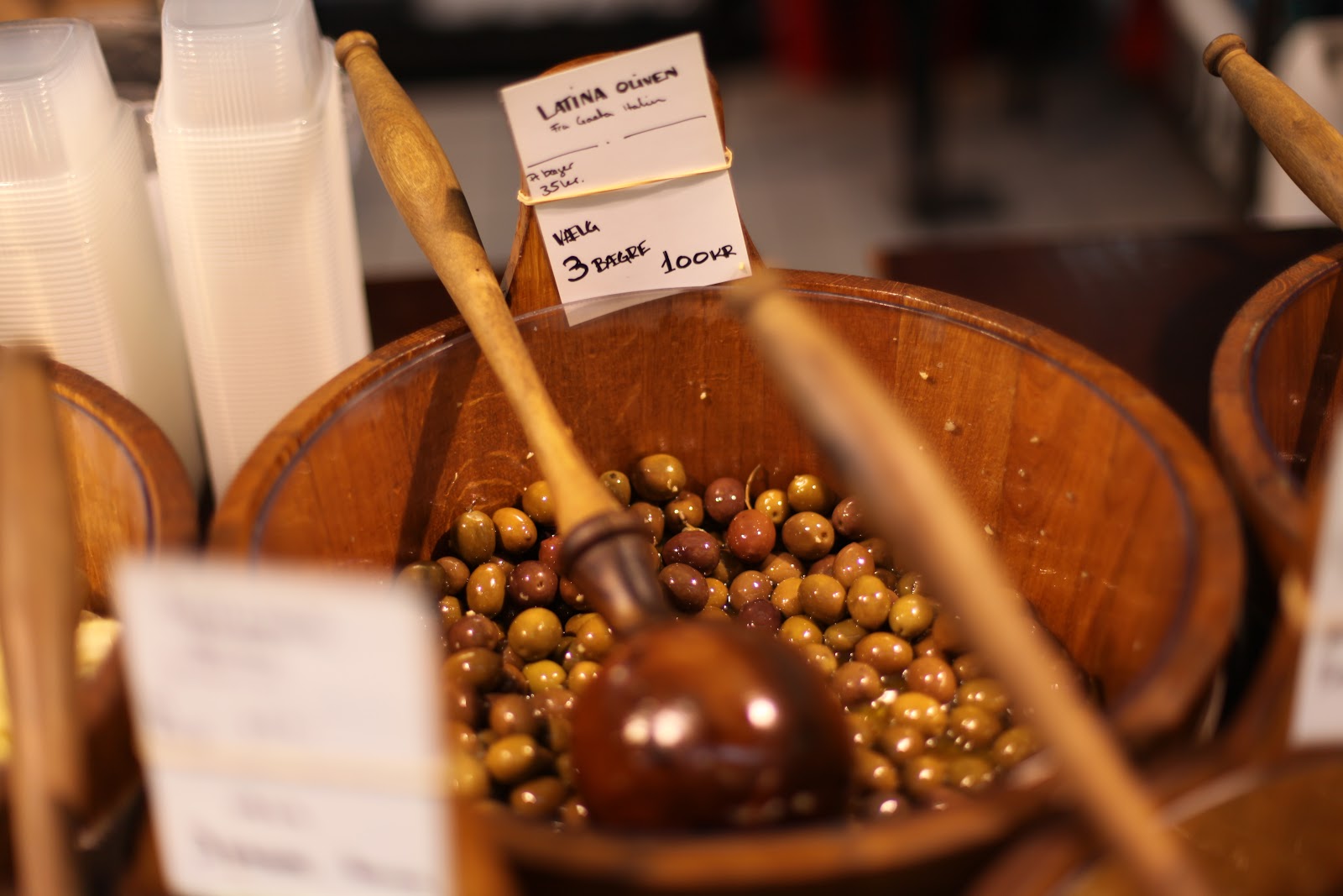 Without a doubt, his garlic olives are the best I’ve ever had, and I quickly made my way back after we’d eaten lunch to snap up a large vacuum-sealed bag of them to bring home. They are now one of the most treasured items in our larder, carefully hidden away from the unmoderated olive-eating appetite of my son and his epicurean tastebuds.
