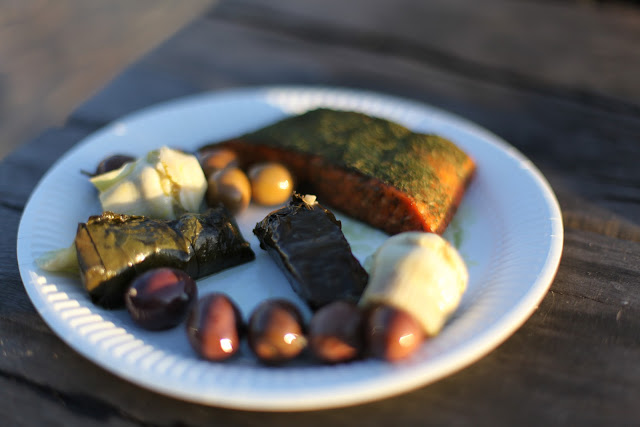 In the end, we chose to sit outside, bathed by the warmth of the sunlight and ignoring the chill of the wind as we ate our simple but absolutely gorgeous lunch of smoked salmon fillet encrusted with dill, accompanied of course by Stig’s generous samples of olives, artichokes and dolmas. Very few vegetables were harmed in the making of this particular lunch, but all the gorgeous protein gave us the fuel we needed to keep exploring.