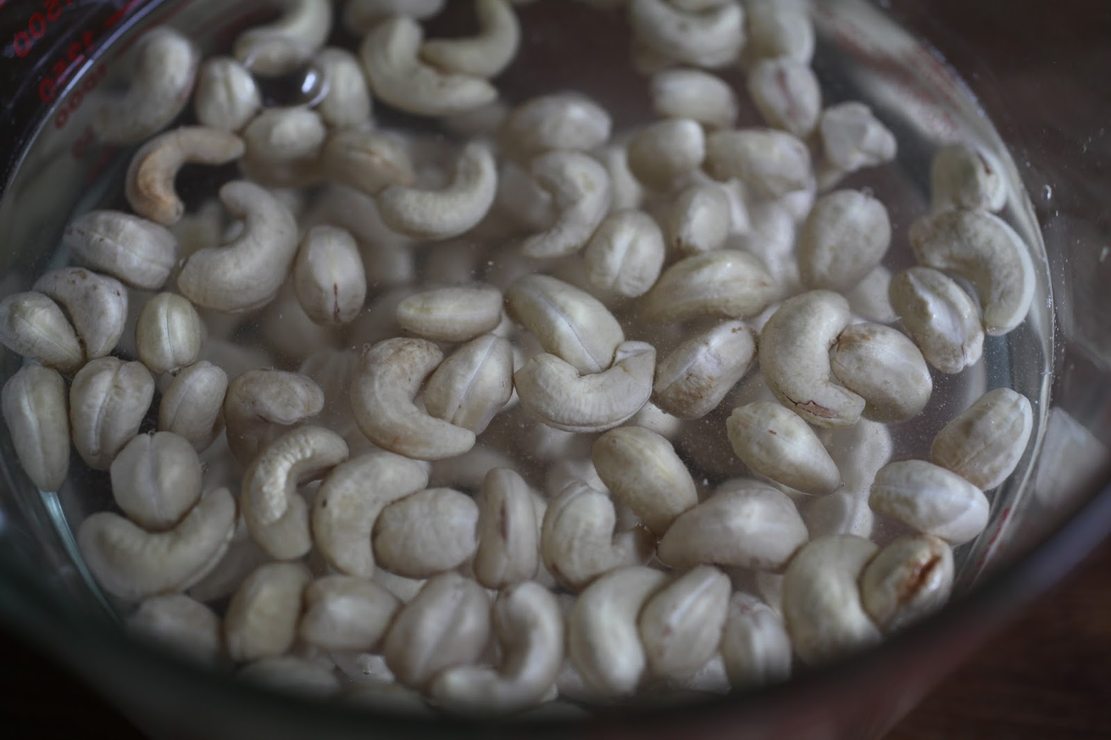 Start by covering the cashews with 3 cups of water and soaking for 30 minutes.