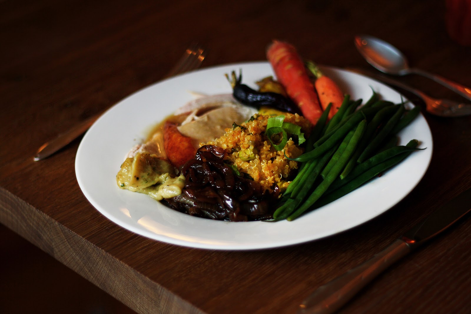 Just looking at this beautiful photo, taken by my friend Gabriela Hansen, I can smell the warm, sweet and rich comfort of roasted turkey filling my home. What a glorious scent! I think the all-day event of cooking the bird is a part of the comfort of it. The ritual of regularly basting as the aroma becomes increasingly intoxicating only serves to build up our anticipation of gathering together around the table in thanks. It’s a part of why Thanksgiving is one of my family’s favourite times of the year.
