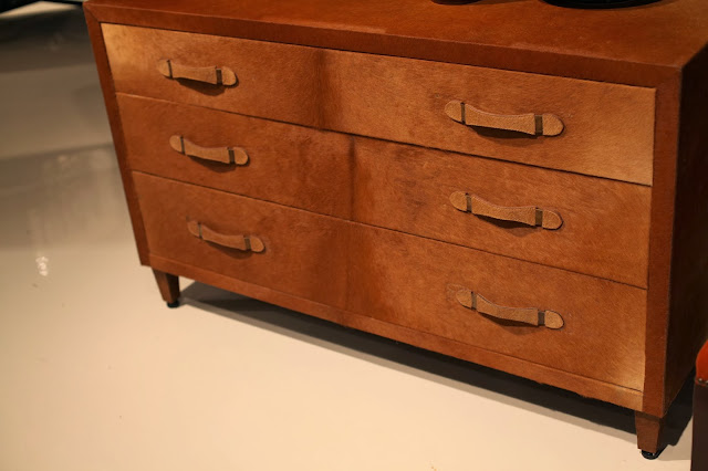 Speaking of hair-on-hide, these next two pieces {below} had me biting my palm and creating my own personal wish list. The warmth and sophistication that these pieces illicit are an intelligent juxtaposition to the often rustic feel of hair-on-hide, and the elegant simplicity of their lines elevates them entirely. They offer the perfect rustic modern statement for a myriad of spaces, all of which I want to design.