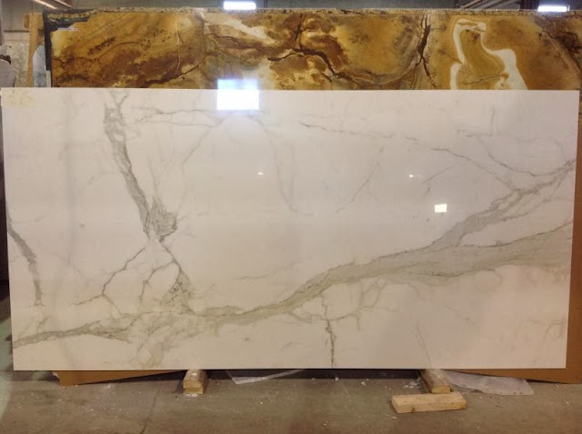 {Manmade Calacutta marble slab} |
