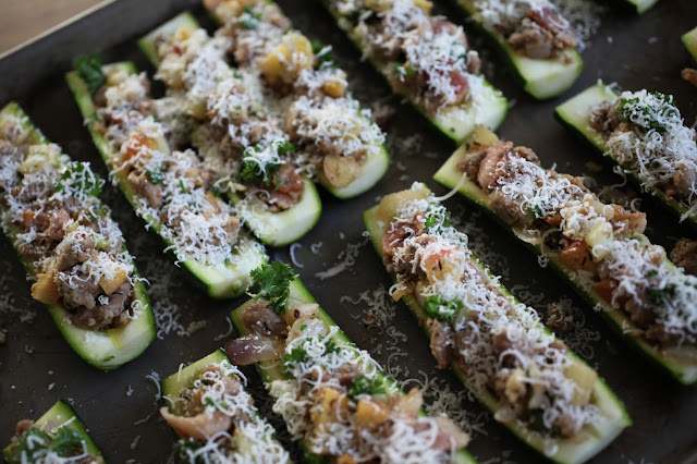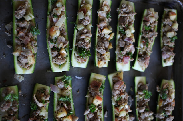 Foodie Friday | Zucchini Stuffed with Italian Turkey Sausage, Bacon, Fennel + Apple