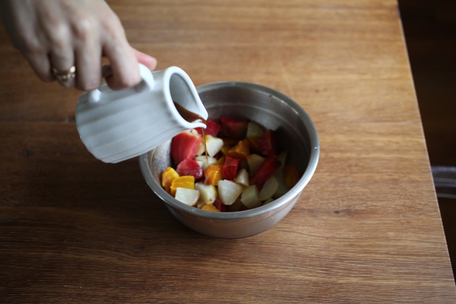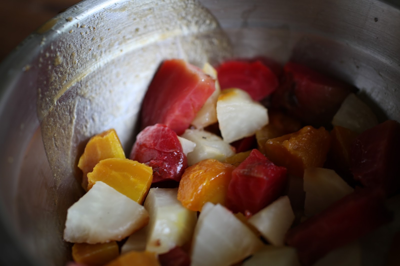 …and then tossed the beets in some of the dressing so they were beautifully coated.