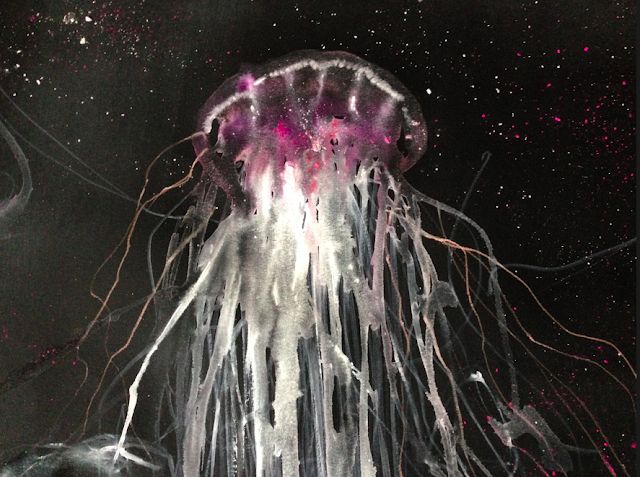 She describes waking up one day with an image of a black and white photograph of jellyfish in her head and the knowledge that she had to paint it. The results are truly breathtaking.