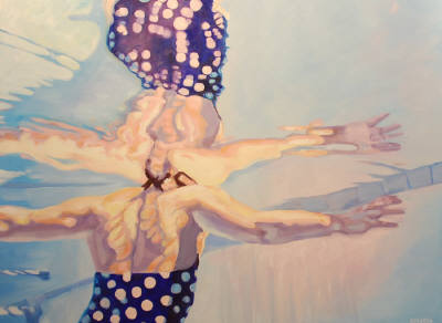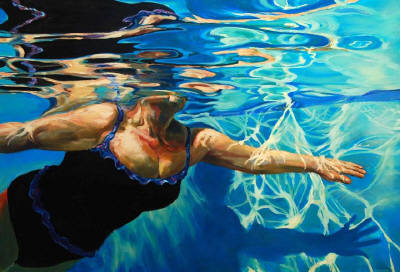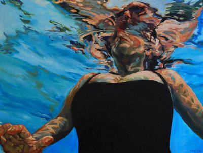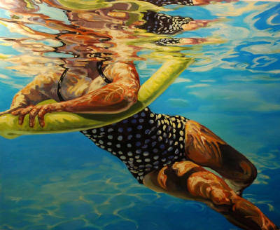 As I project myself into these scenes of relaxation and play, stillness and movement, I am somehow calmed and disarmed as if I’ve spent the afternoon in the pool. Perhaps painting, like water, has the power to heal? It most certainly has the power to transport.