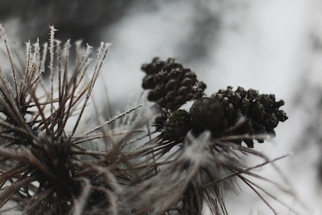 The day was in fact kind of magical to start in that we had the first frost the night before, so the morning had a misty-grey filter that had washed over everything: sky, earth, trees. I managed to get a few shots {above} of the incredible details of the frost. Truly winter wonderland kind of stuff.
