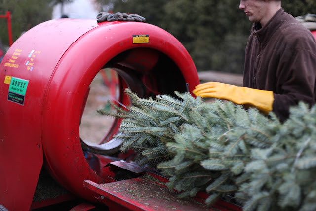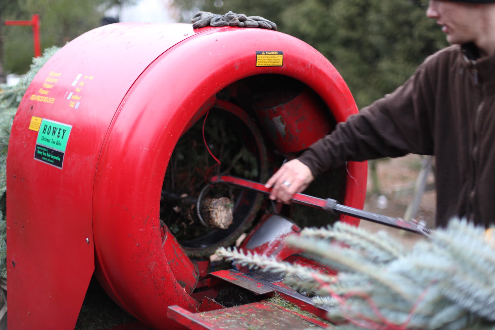 The last step in the process was the coolest. This giant, whirly Christmas-tree-bundler-upper packaged up the trees in the blink of an eye. So much easier to get them home like that, and so fun to watch!